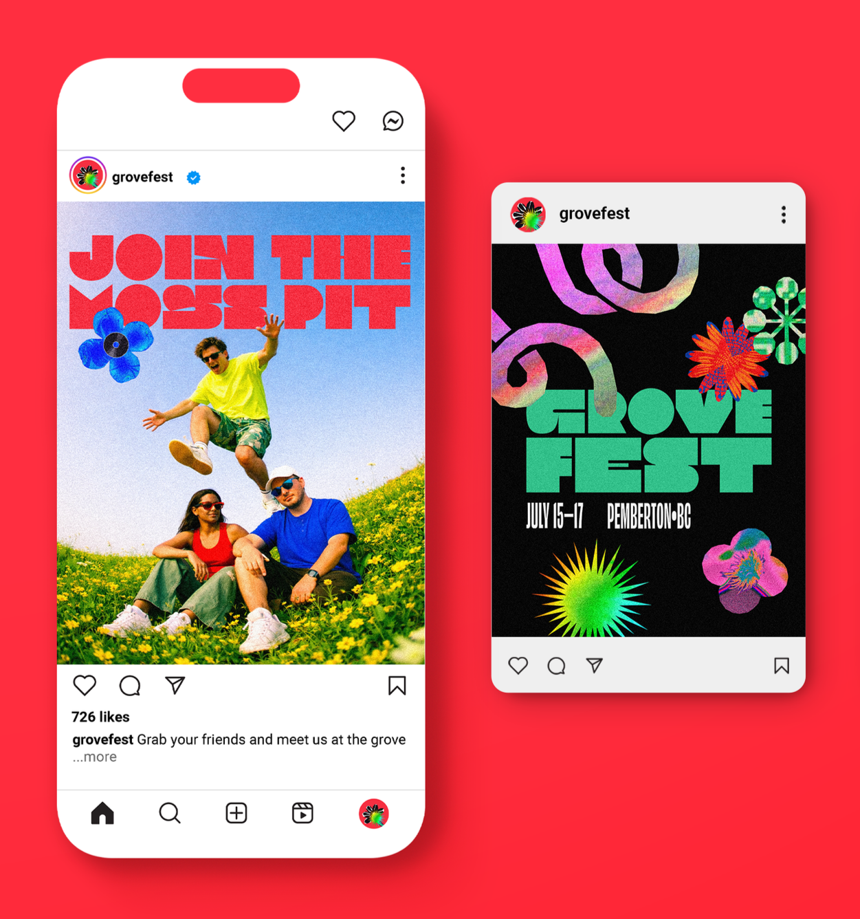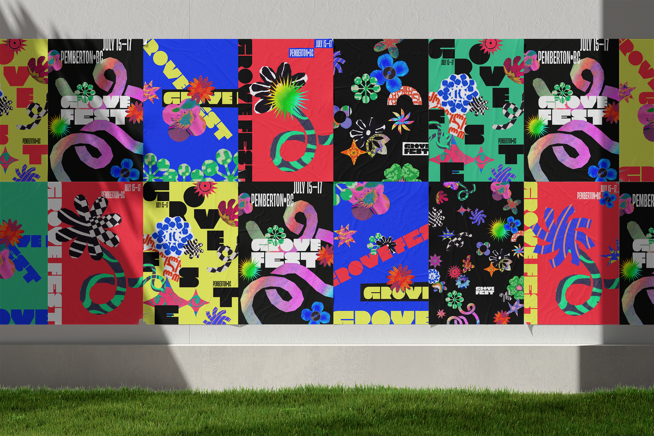 Grove Fest is a conceptual music festival that reimagines the meadows of Pemberton, BC as a neon-infused playground. Blending graphic florals, bold typography, and vibrant colour, the identity comes alive across every touchpoint—creating a high-energy world designed for exploration, connection, and good times.